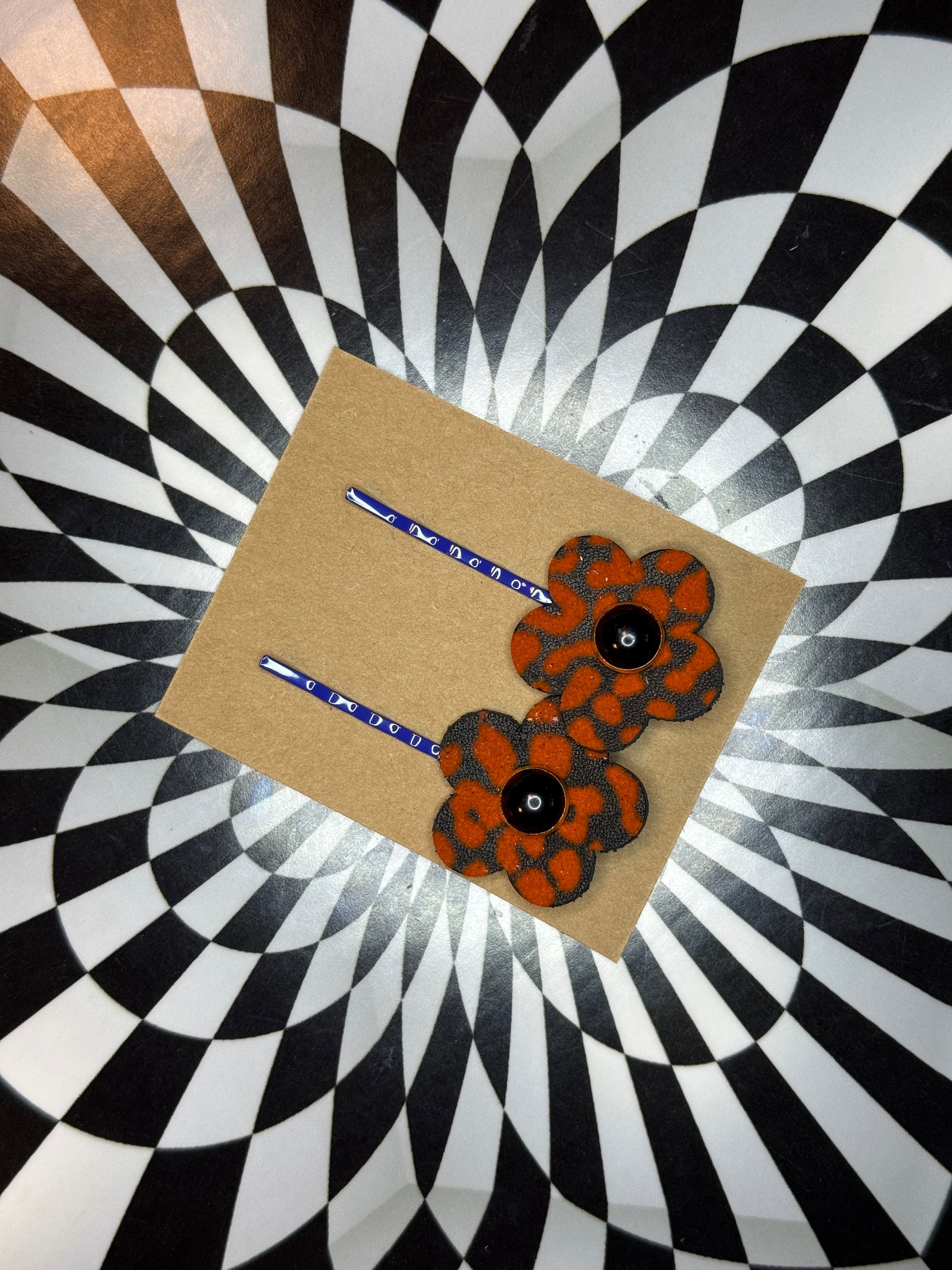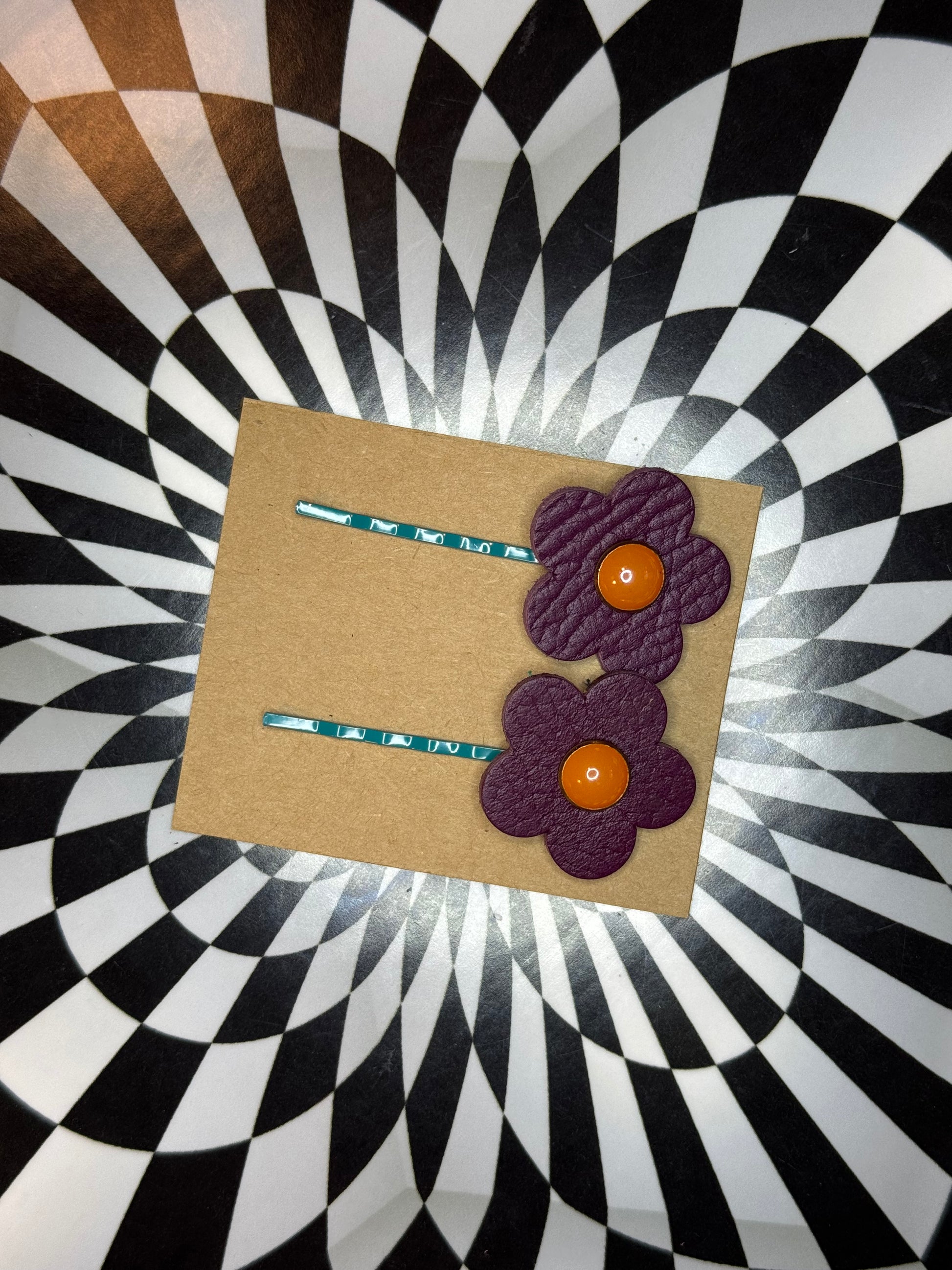 Hair thingies! Leather Bobby pin hair clips with flowers or stars!