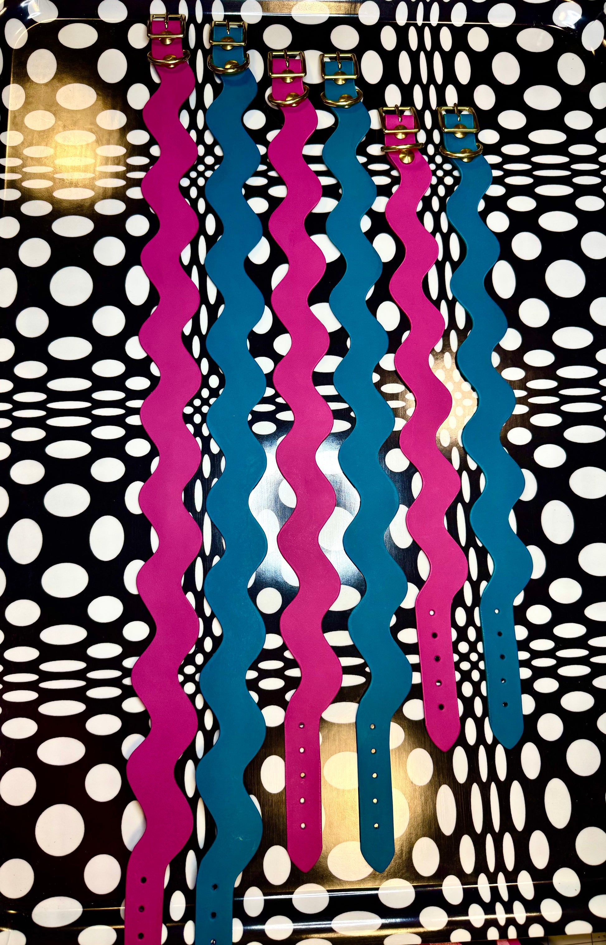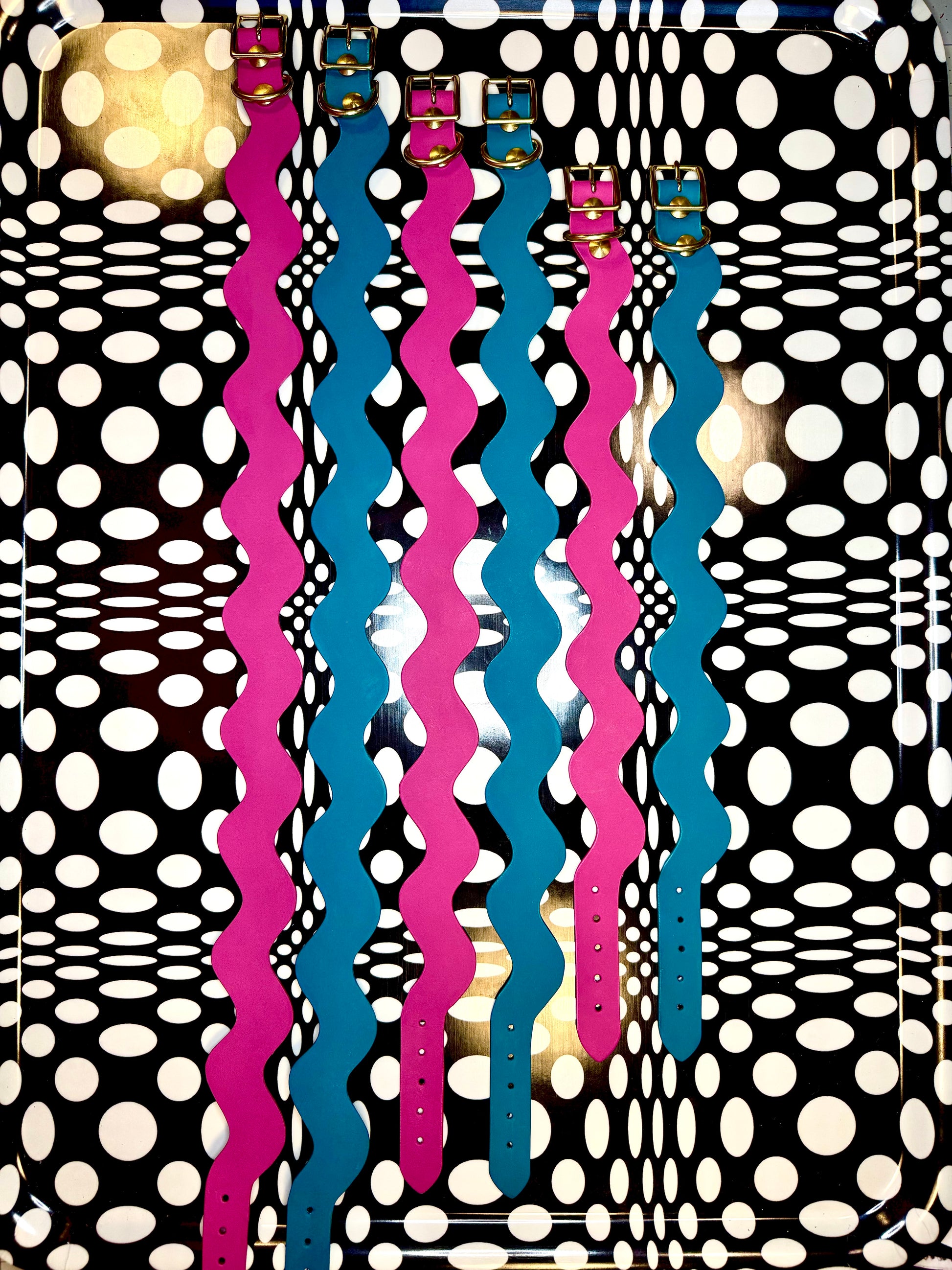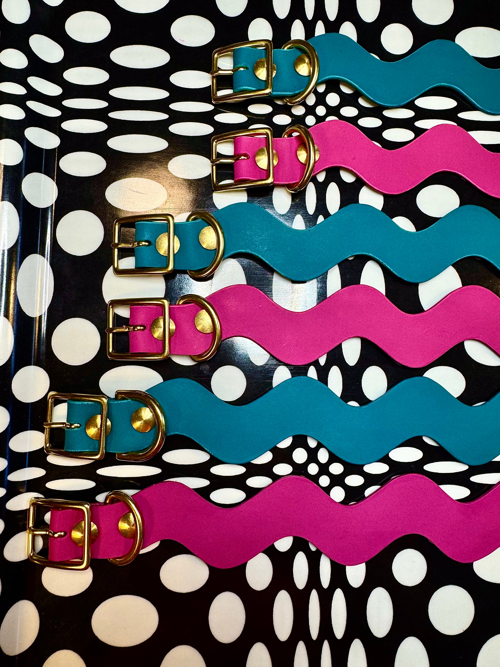 Handmade Leather Squiggle Dog Collar | Colorful Wavy Designer Dog Collar