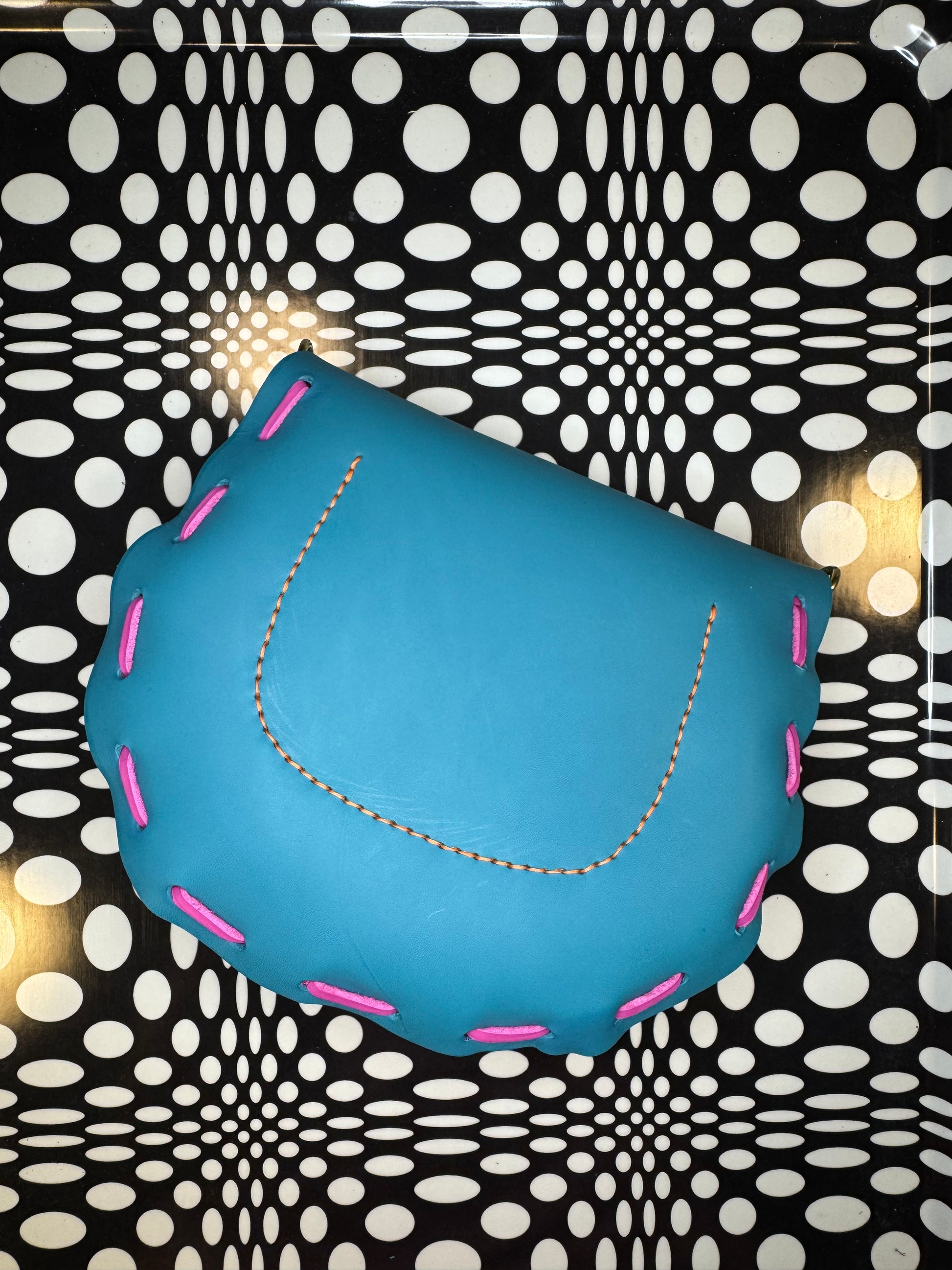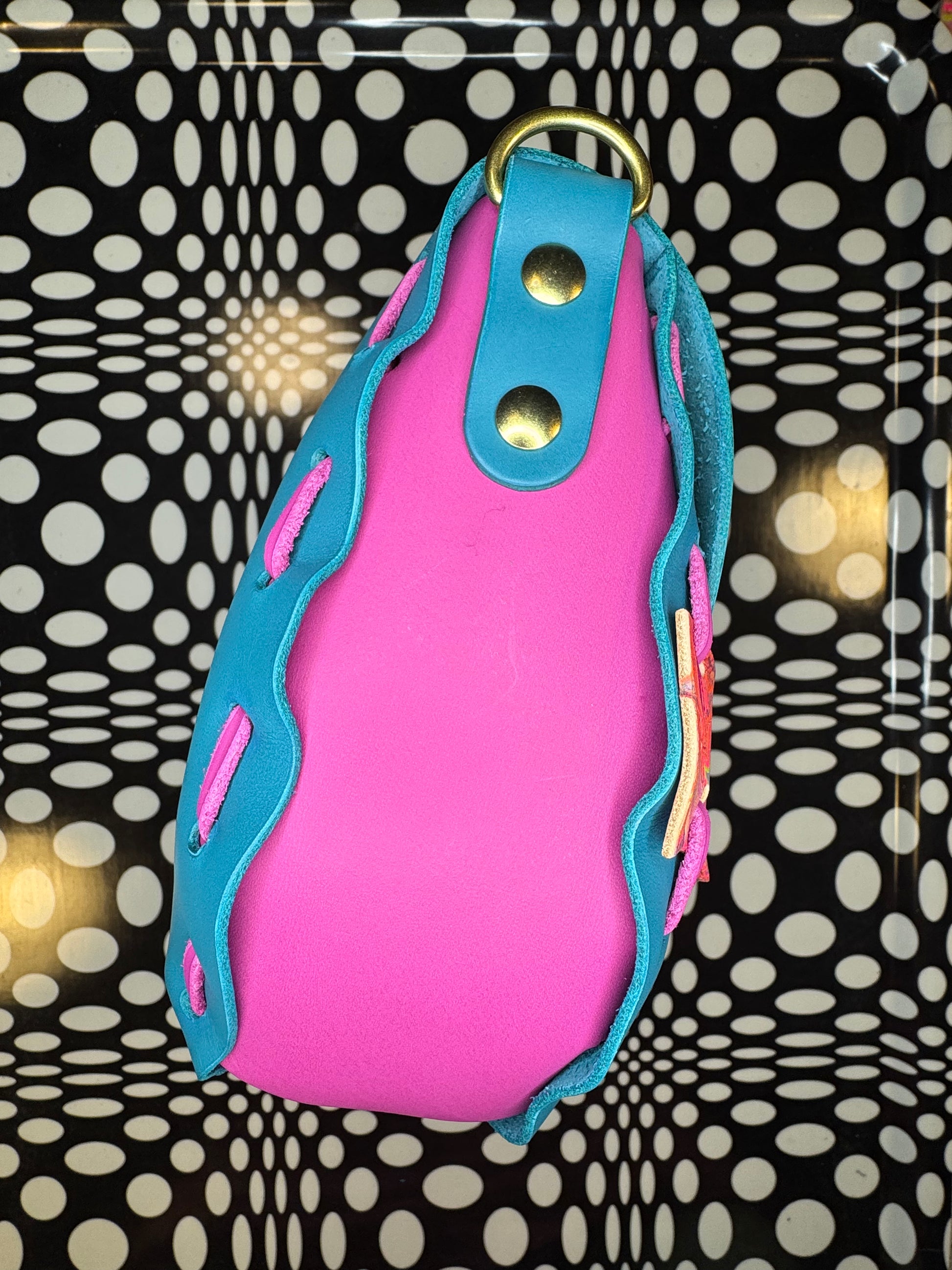 🎨 Small Bag: This one’s a one of one hand-painted masterpiece. Layered waves of vegetable-tanned leather in eye-popping neons and dreamy pastels make every inch sing. Sized at 7.5” wide x 6.5” tall x 2.5” deep, it’s the perfect companion for a colorful life on the go. Comes with a veg tan squiggly shoulder strap that measures 27” long. (This bag was my prototype for the design and does have a few “imperfections”, like the slightly smeared paint on the gusset of the bag. Hence the price difference. 😝)