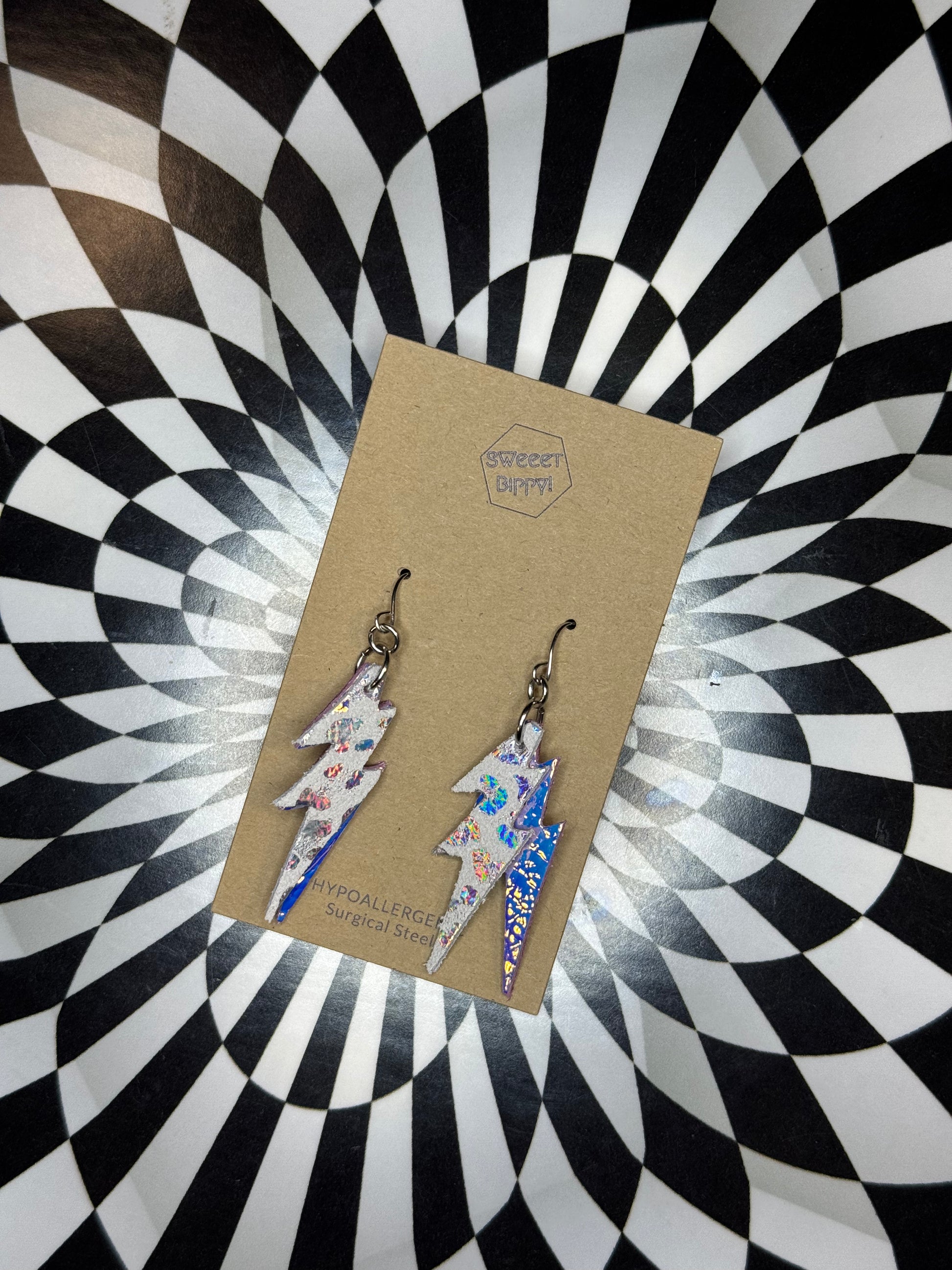 Lightning bolt leather earrings! Bowie!