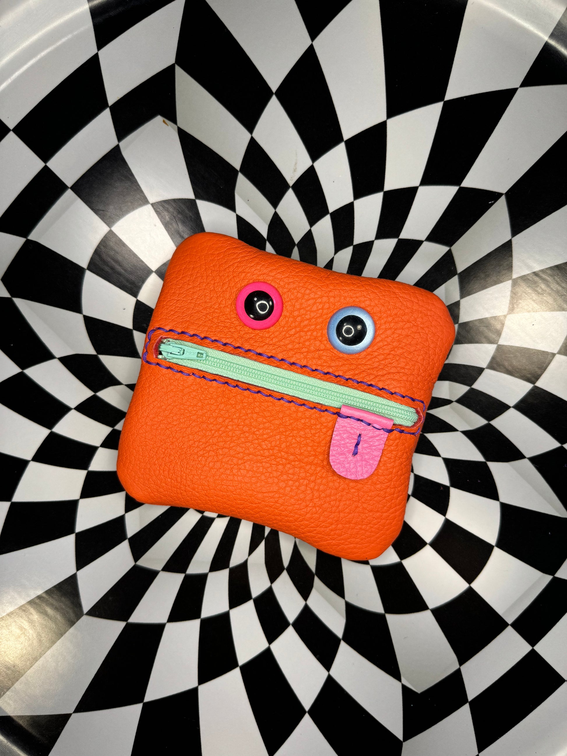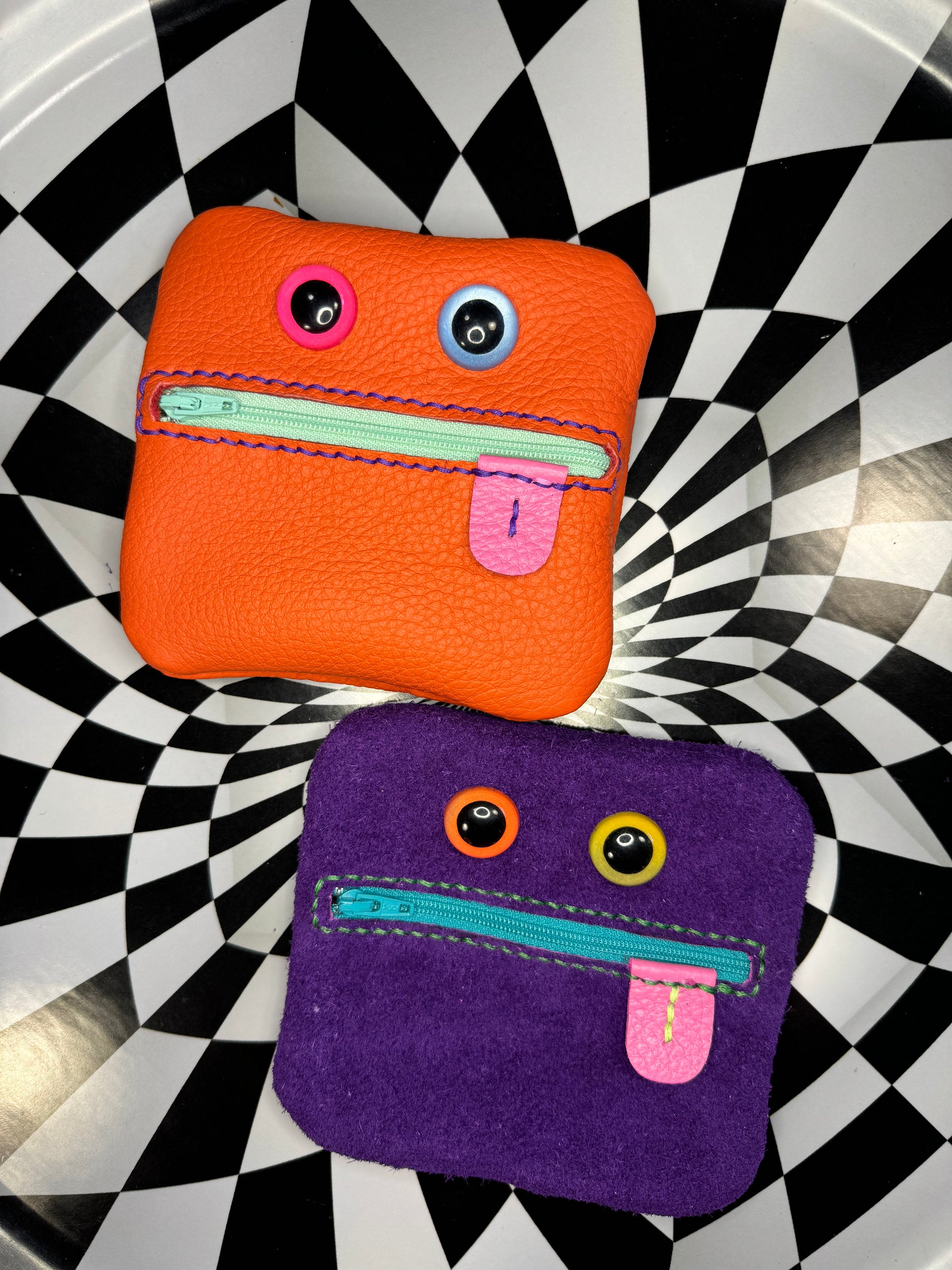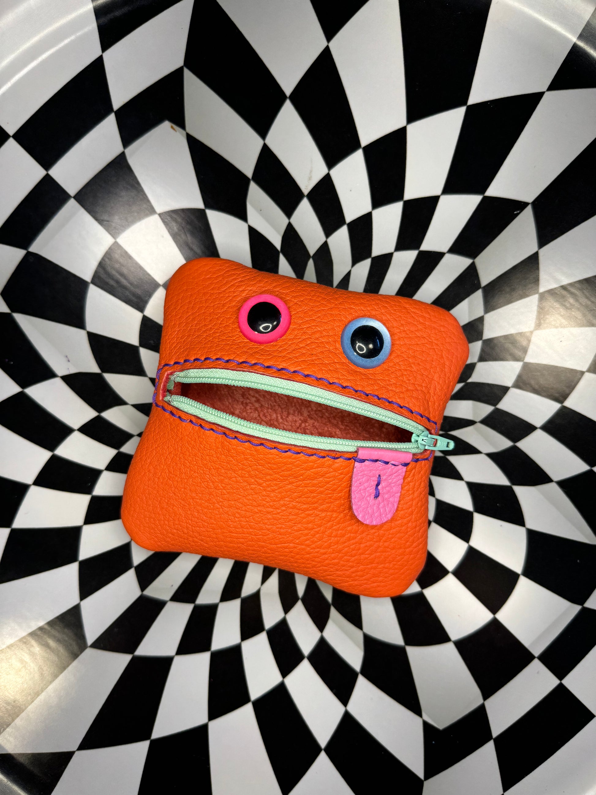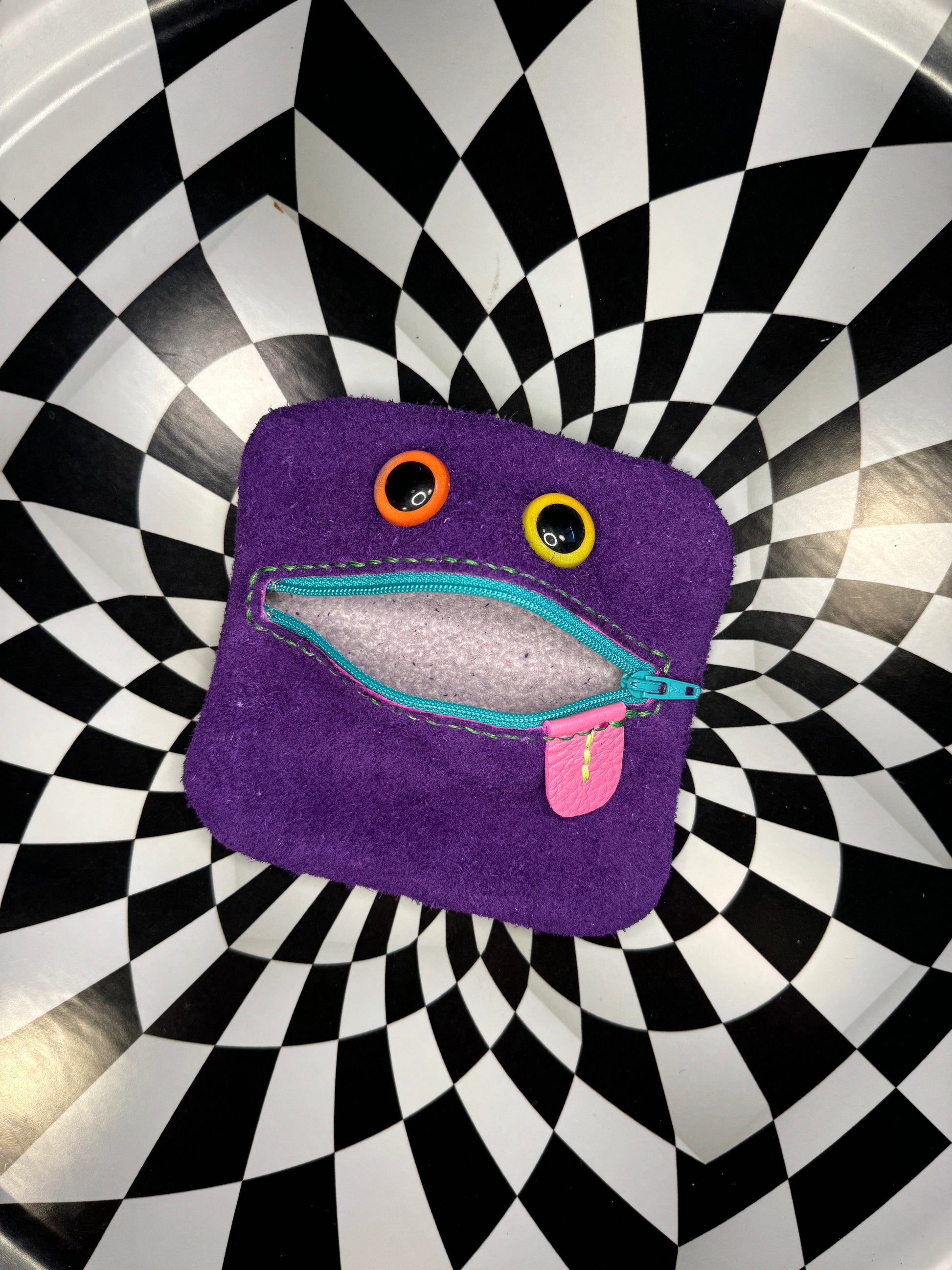 Monster zip pouch! Hand sewn leather zipper case!