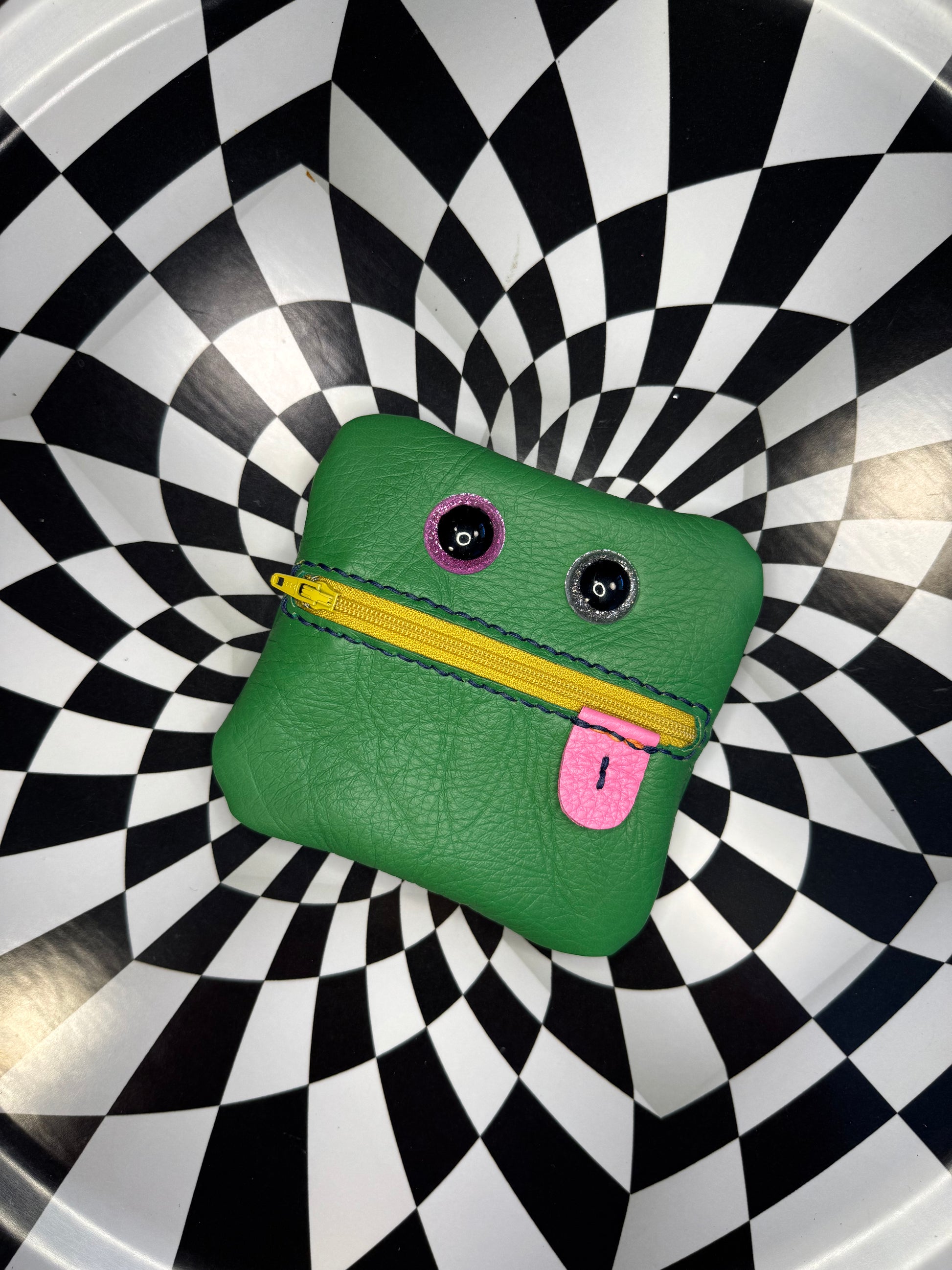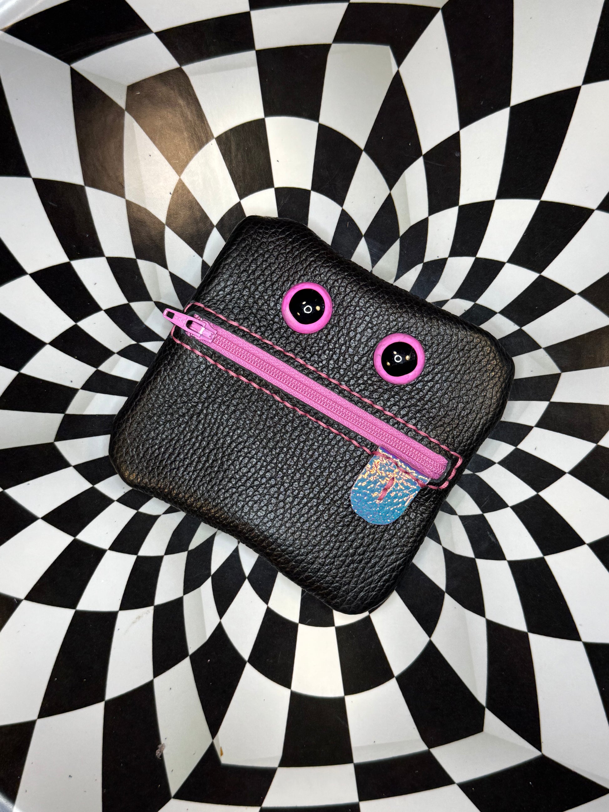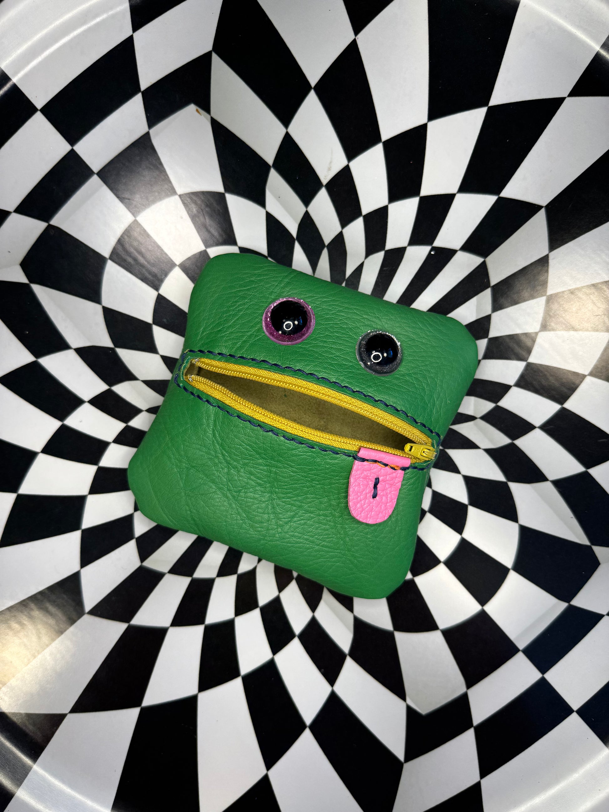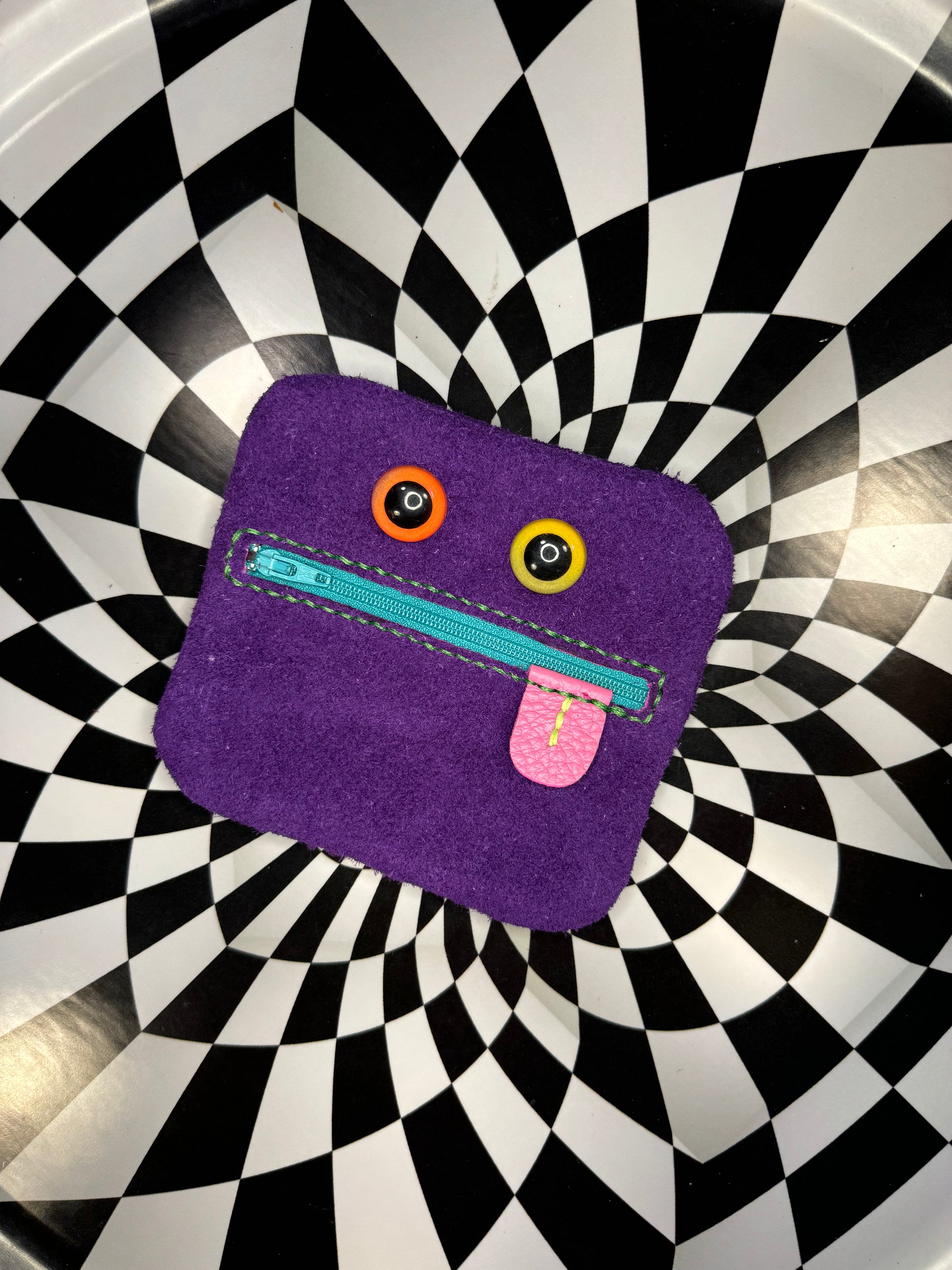 Monster zip pouch! Hand sewn leather zipper case!